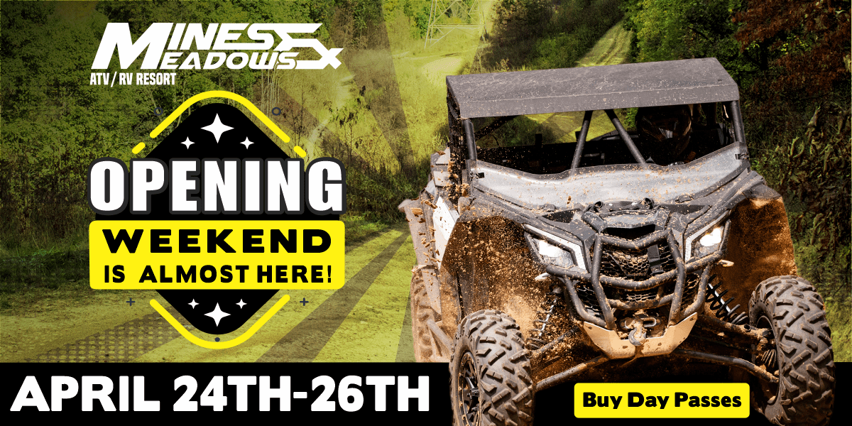 Our premier ATV, dirt bike, and side by side riding resort and campground, has the only underground riding in the Northeast! Mines & Meadows ATV/RV Resort in Wampum, PA offers ATV and dirt bike enthusiasts in Western Pennsylvania and Eastern Ohio a truly unique experience. With over 84 miles of recreational trails on 877 acres of land, we cover the full spectrum of riding skills from beginner through advanced. We have also added more than 8 miles of new single track (dirt bike only) trails that will test even the most experienced riders. While our trails do provide tremendous challenges, we work hard to keep them groomed (weather permitting). What really sets Mines & Meadows apart however is our underground riding through abandoned limestone mines! These mines